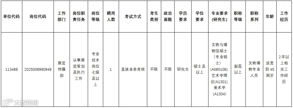 为贯彻落实省委省政府“百万英才汇南粤”行动计划决策部署,吸引优秀高校毕业生及广大有志青年选择广东、建设广东,根据《中共中央组织部 人力资源社会保障部关于进一步做好事业单位公开招聘工作的通知》(人社部发〔2024〕57号)和《广东省事业单位公开招聘人员办法》(粤府令第301号)等有关规定,省委组织部、省人力资源社会保障厅决定集中开展2025年全省事业单位公开招聘高层次和急需紧缺人才工作。广东省非物质文化遗产馆(广东省非物质文化遗产保护中心)招聘工作人员1名。现将有关事项公告如下: