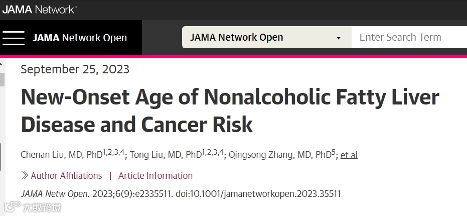 [1]生命时报.2022-08-23.「瘦人脂肪肝」有了明确定义!这3个指标比体重更直观. [2]Chenan Liu,et al.,(2023). New-Onset Age of Nonalcoholic Fatty Liver Disease and Cancer Risk. JAMA Netw Open.