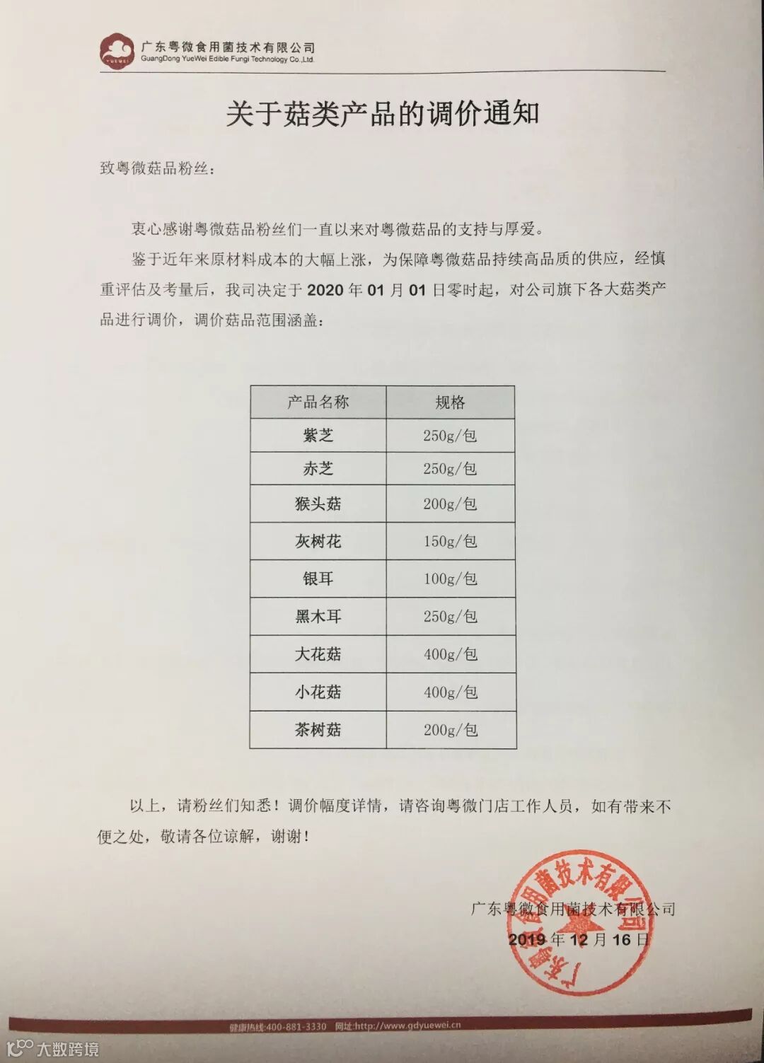 导读:粤微菇品调价通知