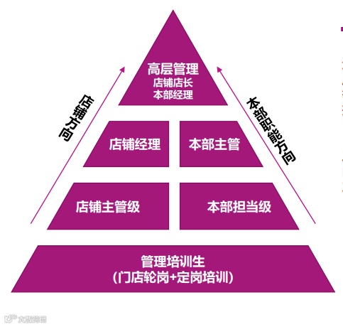 管理培训生考核通过即可晋升为初级管理人员,之后将依据职位需求及个人特质往门店营运方向、门店电商营运方向、门店行政方向、本部职能方向等中高层管理岗位发展。