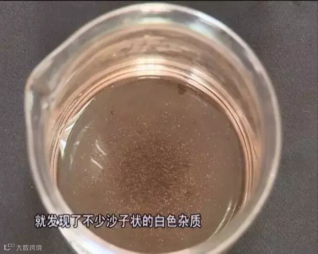 这包散装的孢子粉,通过技术人员的用水冲泡后,就发现了不少沙子状的白色杂质。