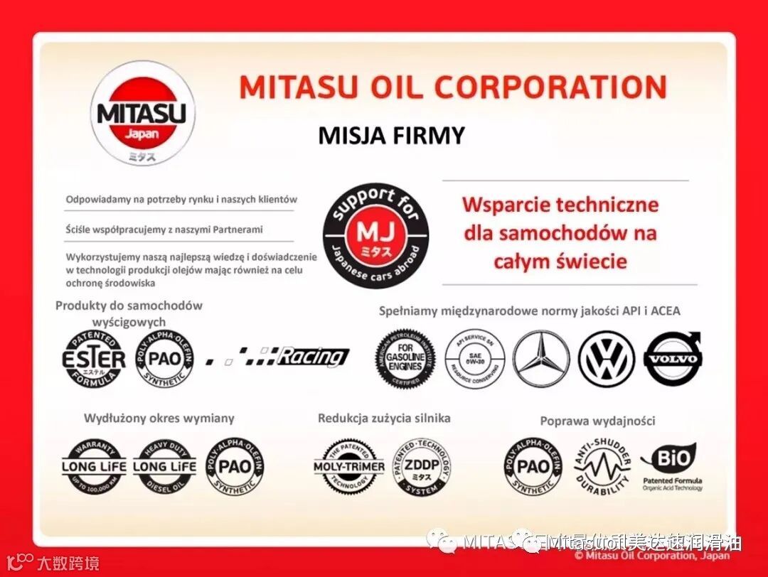 MITASU是日本MITASU石油有限公司的全资子公司,主要负责高品质机油和添加剂的研发和销售。MITASU的产品线,涵盖了汽油引擎机油、柴油引擎机油、自动变速器油、齿轮油以及冷却液,基本可以覆盖汽车上使用的油液产品。