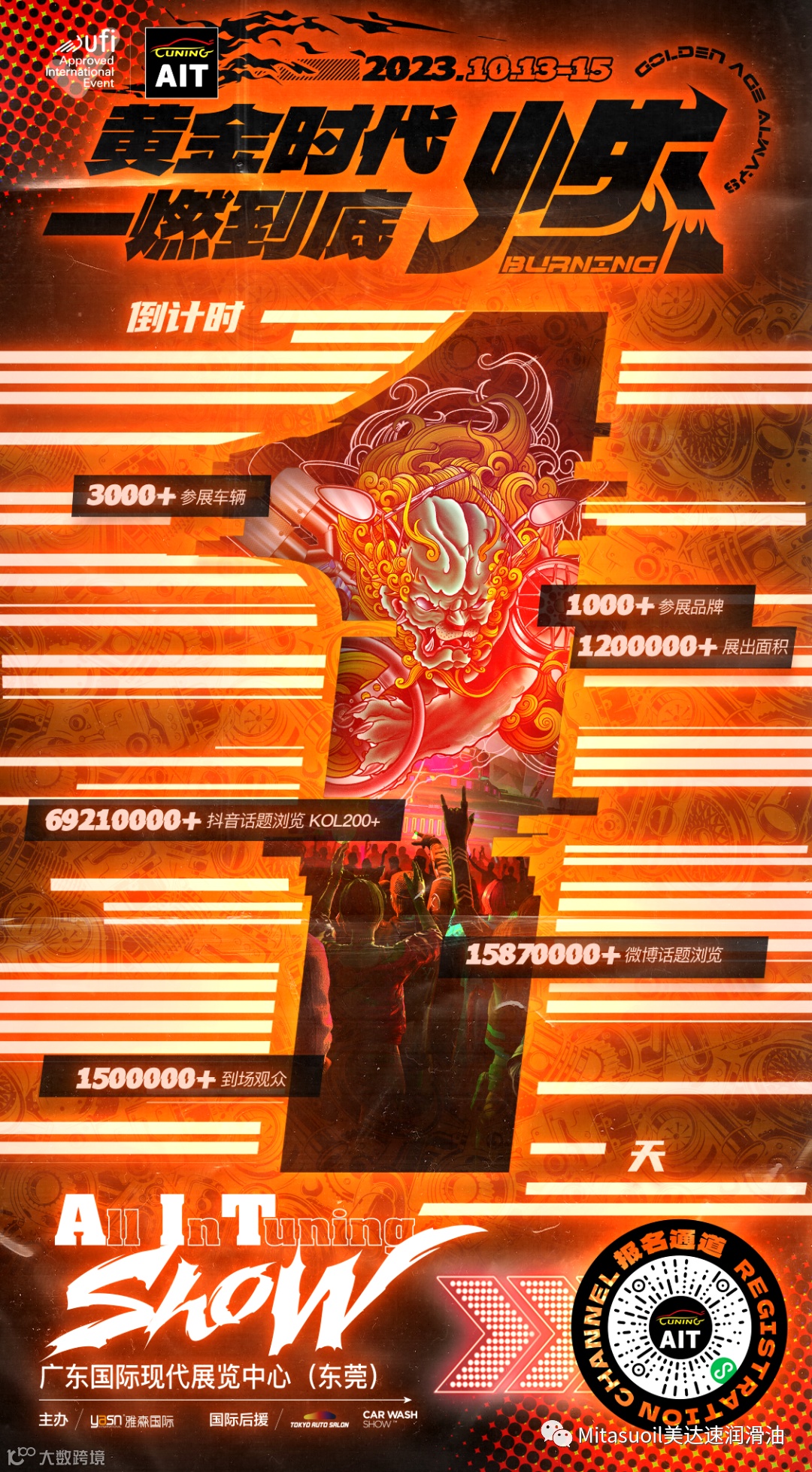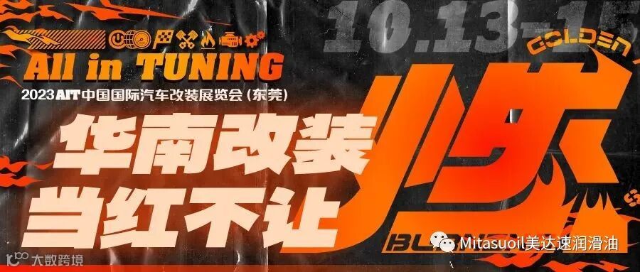 中国改装看华南,华南改装尽在AIT!10月13日-15日,AIT改装展将在广东现代国际展览中心(东莞)拉开帷幕。MITASU美达速将继续携旗下润滑油产品亮相C116展位,期待各界朋友的莅临。
