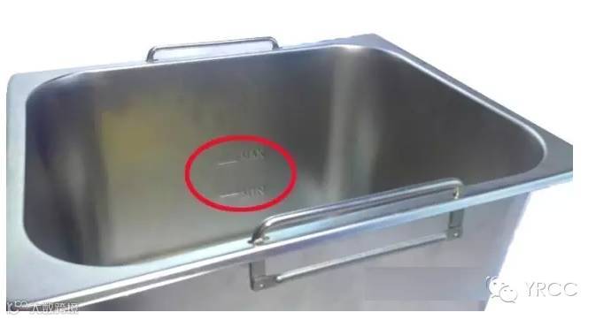 2.按开关前先把油倒进油锅里,油量最少要高于油锅内标注的MIN的位置(约1/4处),最多不能超过标注的MAX的位置(约2/3处)。