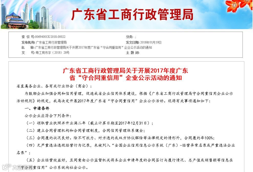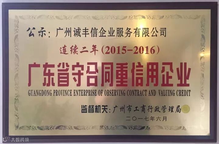2016年,广东全省21个地级市7309家公司符合条件的企业中,就有120家通过“诚丰信”委托申请,并成功加冕!在广州市,“诚丰信”的守重申办业务遥遥领先!(申办热线:13825068340(微信) 戴经理)