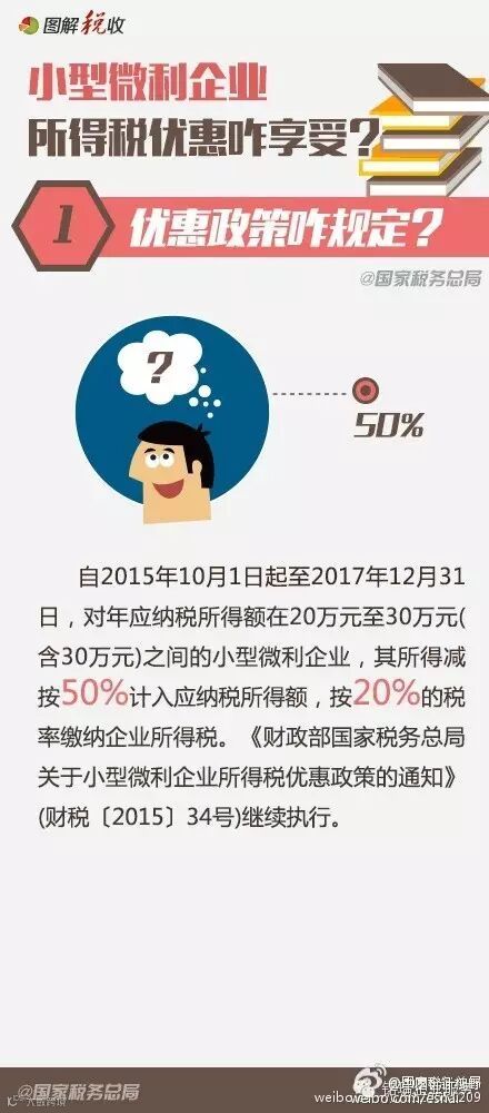 小型微利企业所得税优惠政策再扩围,自2015年10月1日起至2017年12月31日,对年应纳税所得额在20万至30万之间的小型微利企业,其所得减按50%计入应纳税所得额,按20%的税率缴纳企业所得税。如何享受这一税收优惠,以下政策要点要知道!