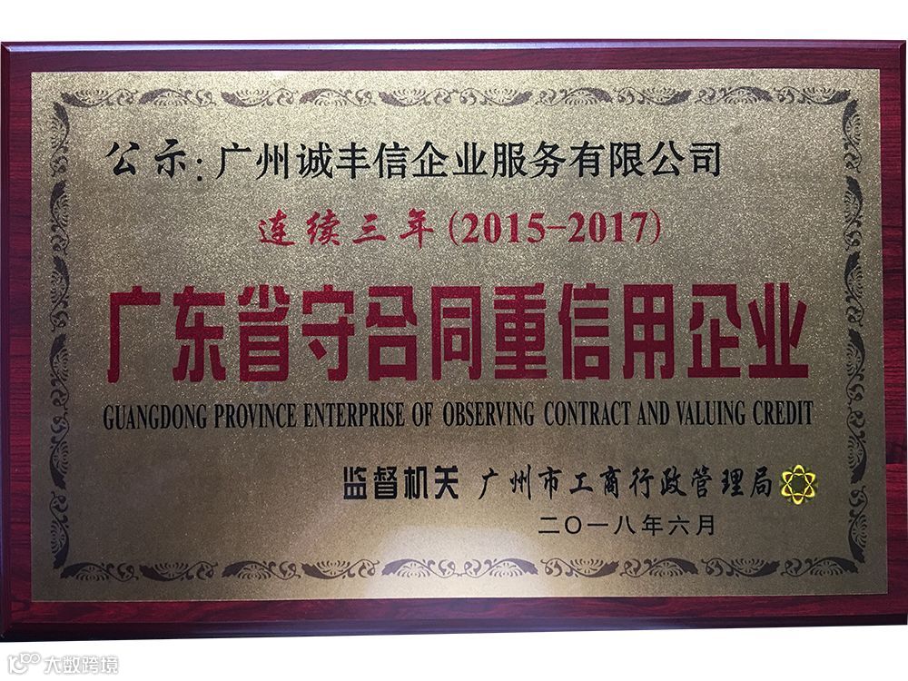 2017年度广东省“守合同重信用”企业中近200家通过“诚丰信”委托申请,并成功加冕!在广州市,“诚丰信”的守重申办业务遥遥领先!(申办热线:13825068340(微信) 李小姐)