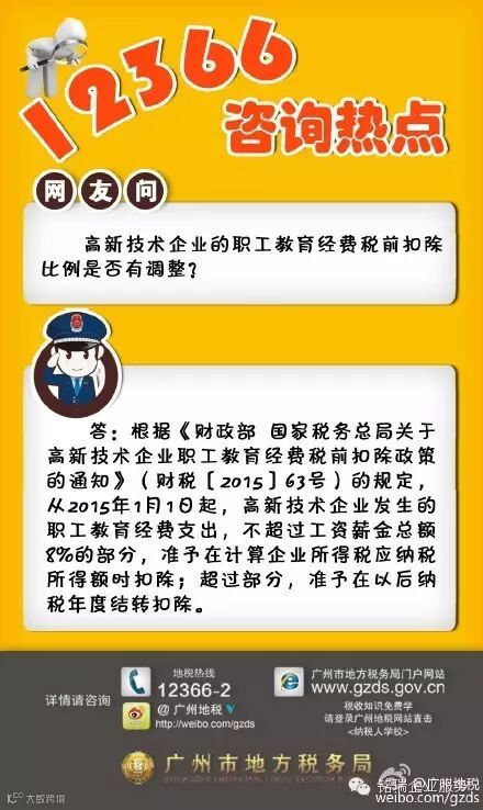 根据财税〔2015〕63号文规定,从2015年1月1日起,高新技术企业发生的职工教育经费支出,不超过工资薪金总额8%的部分,准予在计算企业所得税应纳税所得额时扣除;超过部分,准予在以后纳税年度结转扣除。