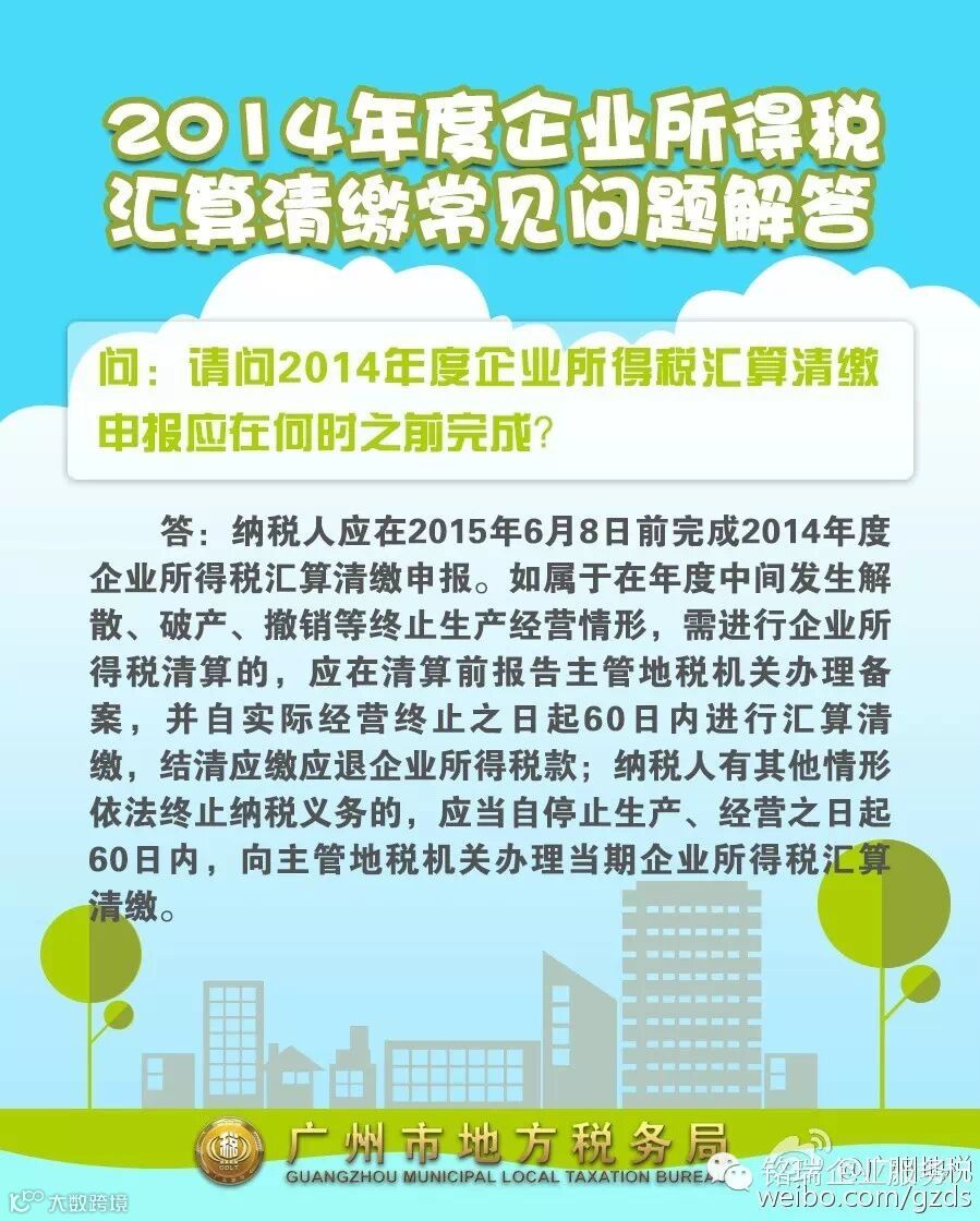 广州诚丰信企业服务有限公司纳税人应在2015年6月8日前完成汇算清缴申报。如属于在年度中间发生解散、破产等终止生产经营情形,需进行企业所得税清算的,应在清算前办理备案,并自实际经营终止之日起60日内进行汇算清缴,结清应缴应退企业所得税款。