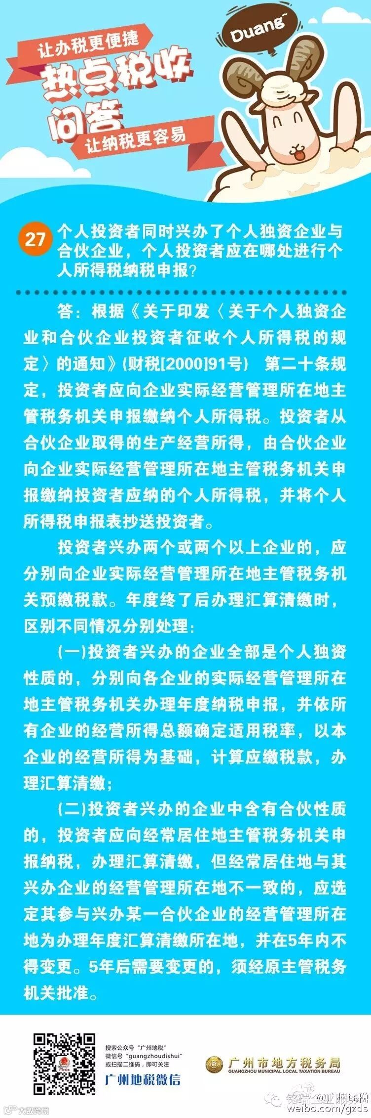 【个人投资者同时兴办了个人独资企业与合伙企业,个人投资者应在哪处进行个人所得税纳税申报?】