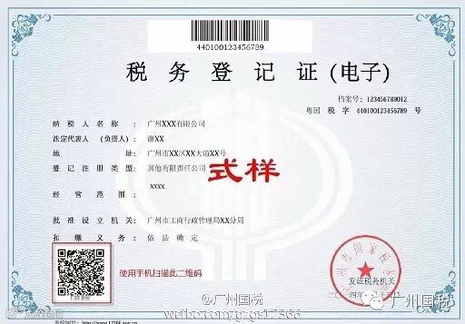 根据《广州市国家税务局关于实行税务登记证电子化的公告》(2014第3号),我局研究决定,在黄埔区、从化市试行的基础上,自10月1日起实行税务登记证电子化的范围扩大到全市各区(县)局办税服务厅和“广州市国家税务局网上办税厅”。