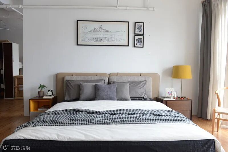一般情况下,床头柜都是成双成对,对称摆放在床两边的,这样夫妻两人的物品可以各放一头,存取比较方便。