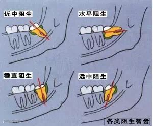 第三磨牙有称智齿,是20岁左右萌出的牙。目前多数人的智齿长不好,发生阻生,形成阻生智齿,这是为什么呢?原来。人类在进化过程中,生活习惯发生了改变,所获得的食物越来越细软,逐渐造成下颌骨退化、缩短,以致智齿萌出位置不够,使智齿萌出受阻。医学上称为阻生智齿。阻生智齿可以呈现多种多样的位置,如垂直、前倾、甚至水平位等。