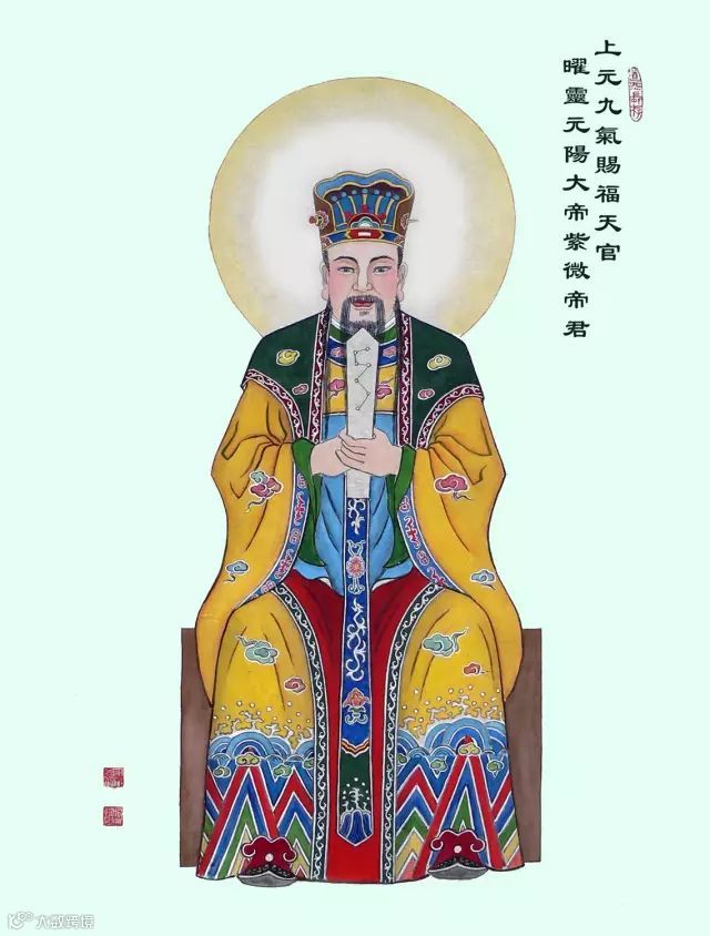 上中下三元,分别对应着天地人三官。天官掌管人间命运,主持生死公道,正月十五亲临人间巡察善恶,赐福人间。