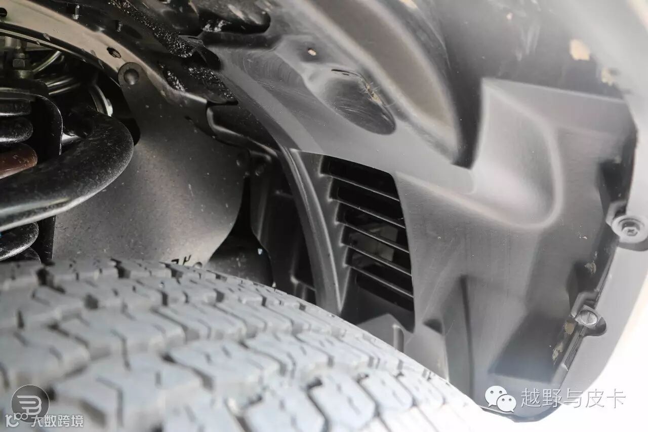 挡泥板跟轮眉采用了黑塑料材质,硬派越野车都有这么一身装备