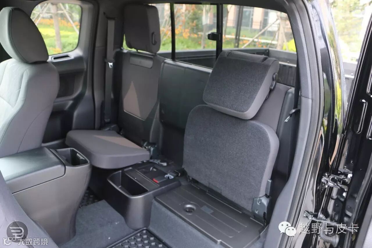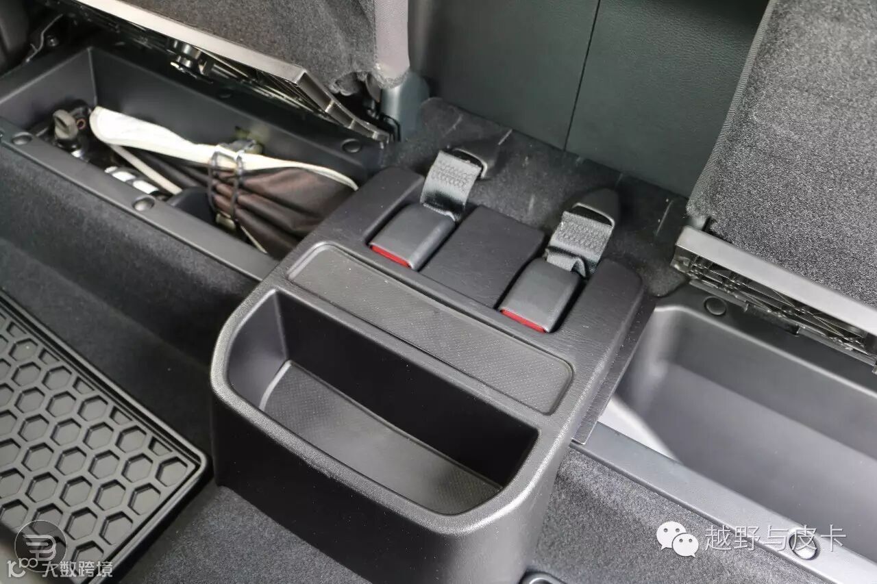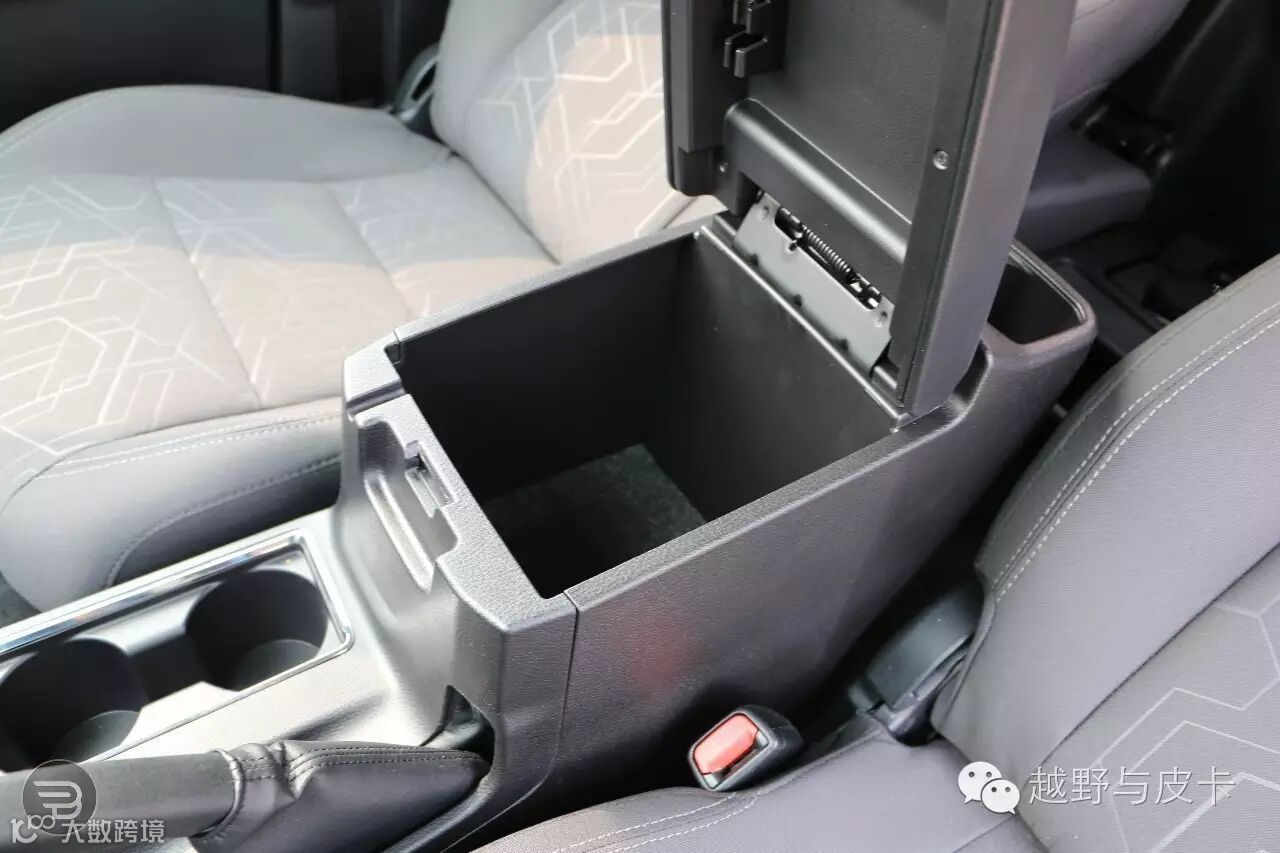 受制于车宽,扶手箱的空间比不上全尺寸皮卡那样夸张
