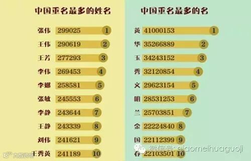 名字是一个人的符号,用来与其他人区别,表明其独特的存在。然而中国人口众多,重名现象非常普遍。据统计,“张伟”在全国重名数高居榜首,高达290607人左右,而叫“王伟”和“王芳”的人数分别位居第2、3位。