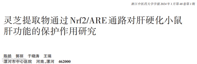 [2]陈皓,郭丽,于晓涛等.灵芝提取物通过Nrf2/ARE通路对肝硬化小鼠肝功能的保护作用研究[J].浙江中医药大学学报,2024,48(01):21-29.DOI:10.16466/j.issn1005-5509.2024.01.003.