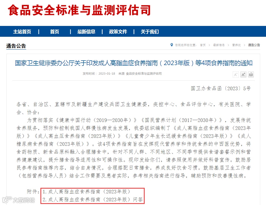 [1]2023-01-18国家卫健委官网《成人高脂血症食养指南(2023年版)》
