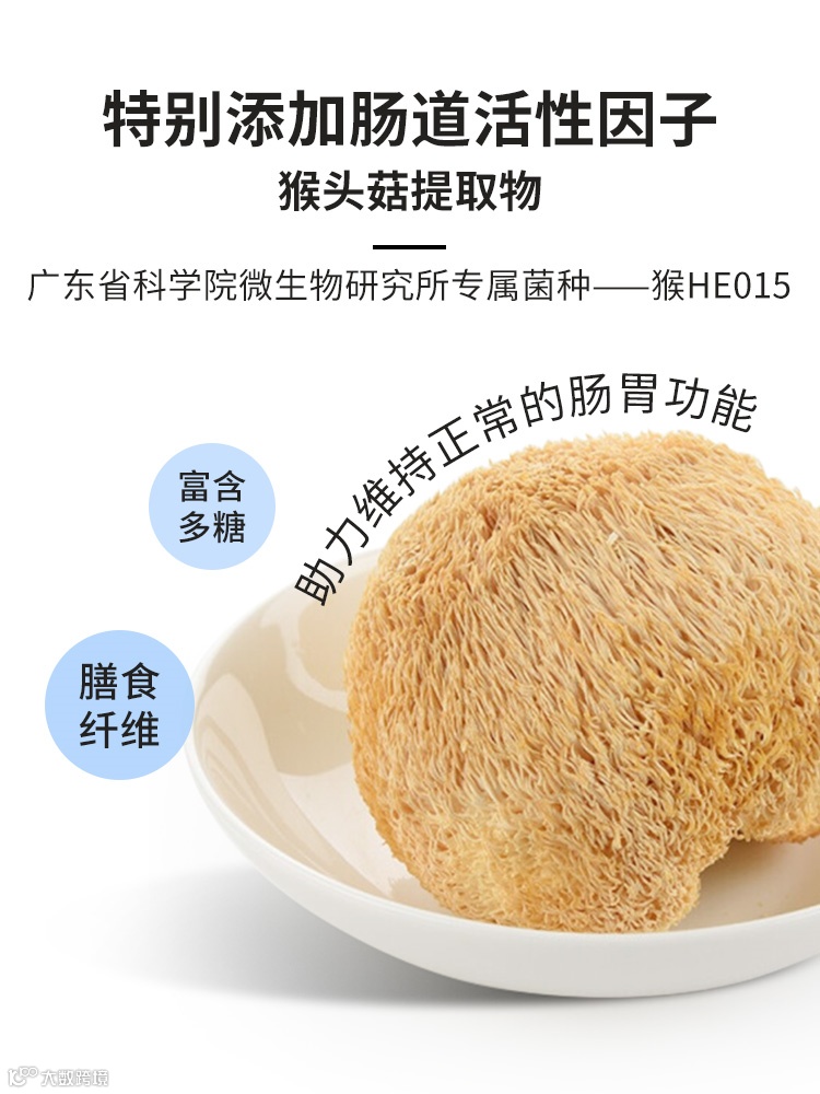 另外配方里特别添加肠道活性因子猴头菇提取物,是粤微研究所专属菌种猴HE015,该品种膳食纤维含量非常高,一盒复合益生菌含24g膳食纤维≈10.5个苹果,对维持正常的肠胃功能、助力轻生活起到了很好的帮助。如此,整个复合益生菌配方就是除了5种益生菌+5种益生元+1种猴头菇就没有其他的了,三者形成调、养、清,共同协同益生菌,辅助肠胃吸收。