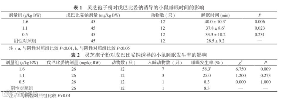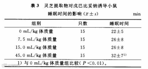 高剂量的灵芝提取物能延长催眠剂诱导的睡眠时间