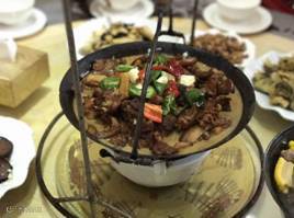 在上第四个热菜——手工珍珠丸子时,按照传统,全体要起立干杯。