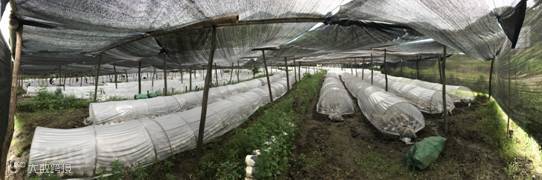 走进大棚,可以看到,搭建大棚的材料、大棚的结构非常简单,这是因为种植灵芝的土地需要轮转,这样才能保证灵芝的质量,所以不能设置永久或者半永久的设施,当地栽培户都是用环保或者可回收的用具,非常符合本地生产生态。