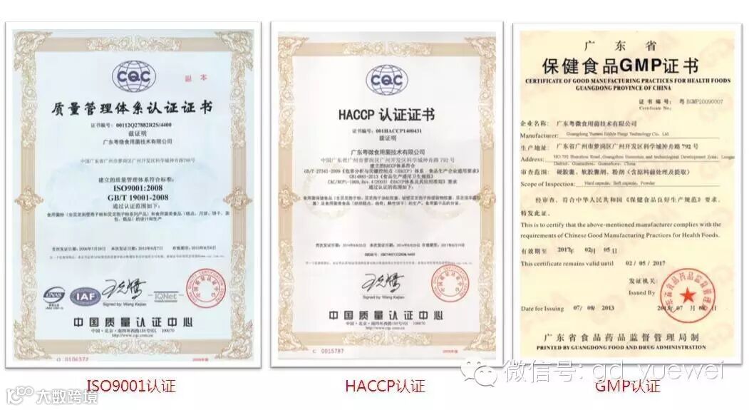 符合GMP、ISO9001、HACCP三大认证的粤微生产体系。