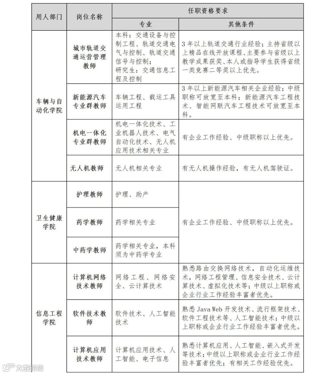 3.其他:高级职称或具有丰富的相关教学/企业工作经验者优先。