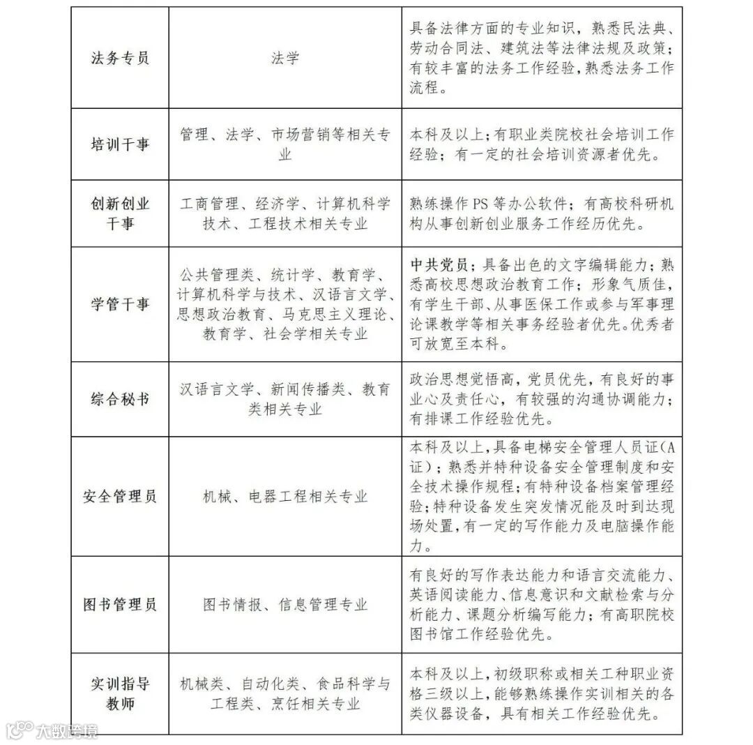 2.学历学位条件:原则上教师类及行政管理类岗位须具有硕士研究生及以上学历学位,个别岗位有注明的除外;辅导员岗位优秀者可放宽至本科。