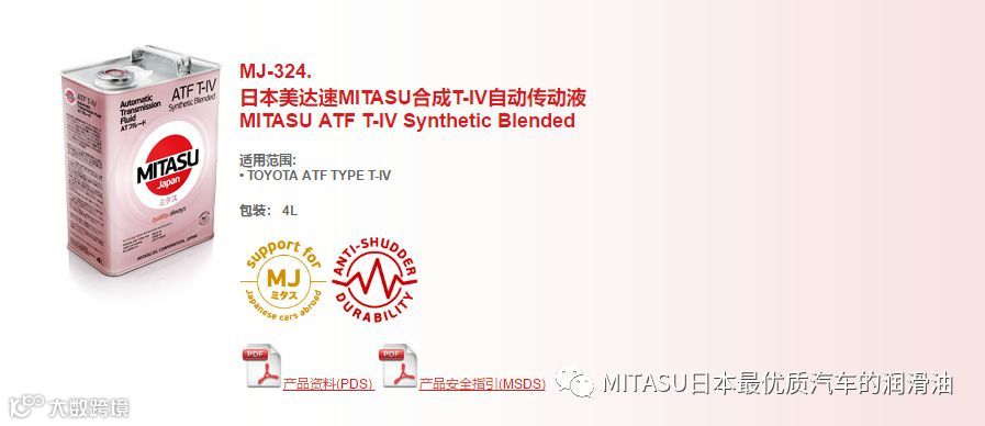 ATF T-IV是根据TYPE T-IV标准研发的自动变速器油,具备优秀的抗震性、耐用度以及抗磨性能,可以为自动变速器提供全面的保护。除此以外,这款变速器油还适用于推荐使用T-III、D-II和D-III标准油液的变速器。