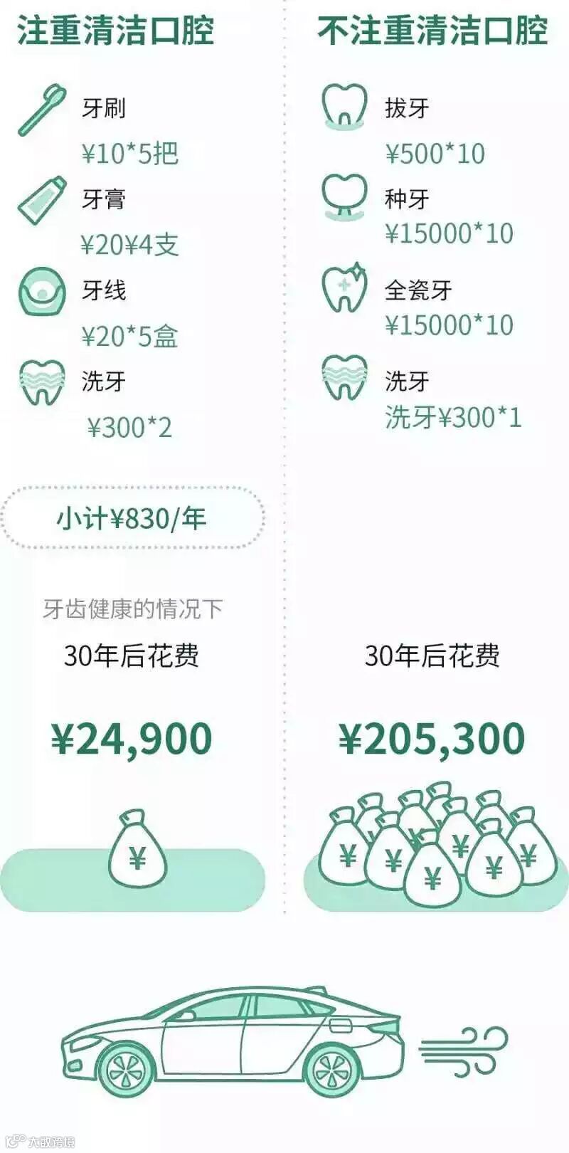 也许二三十年后,你因为注重口腔清洁省下的钱,开着宝马,快意人生。
