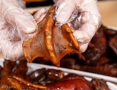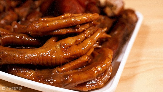 喜欢鸭爪的原因很直白,比鸡爪大一点肉多一点。咬到深处还有软筋部分,Q弹紧致的口感非常耐啃。