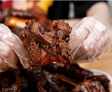 最有料的部分就是鸭翅,一定要第一时间下手,经过高温皮肉都被收缩在一起,突破柔软的皮囊还有鲜嫩的肉体在等待着。