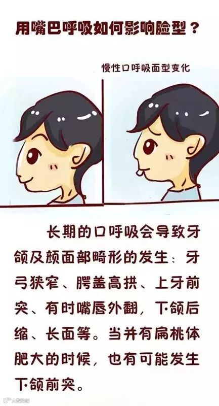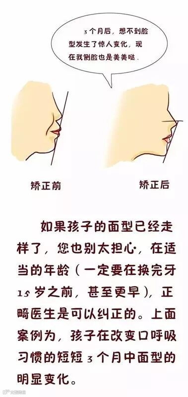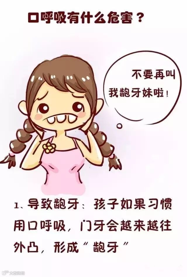 1.有口呼吸习惯的人非常常见,但很多人对它不是很重视。很多人不知道口呼吸习惯的危害,口呼吸的孩子就是每年变丑一点点的。让你下巴后悬三十年,双颌前突一天又一天,牙龈外露一大片,能长得“秀气相”吗?
