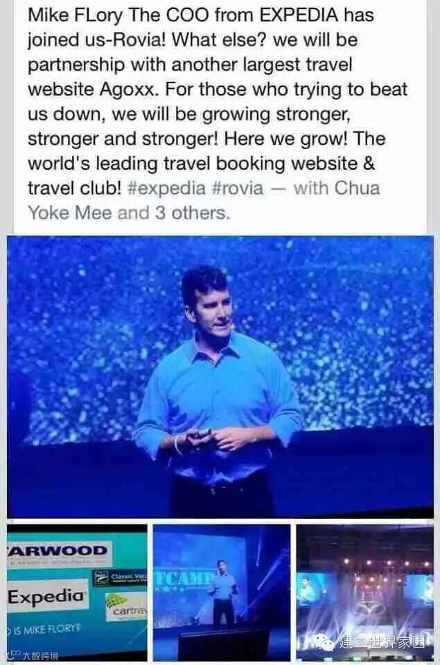 曾经在Expedia工作10多年的首席运营官(COO)Mike Flory 现任职于Rovia (WV 世界环旅集团的旅游网站),全权负责Rovia 网络订购后台。在马来西亚亚洲国际峰会训练营为所有会员分享公司的未来计划。