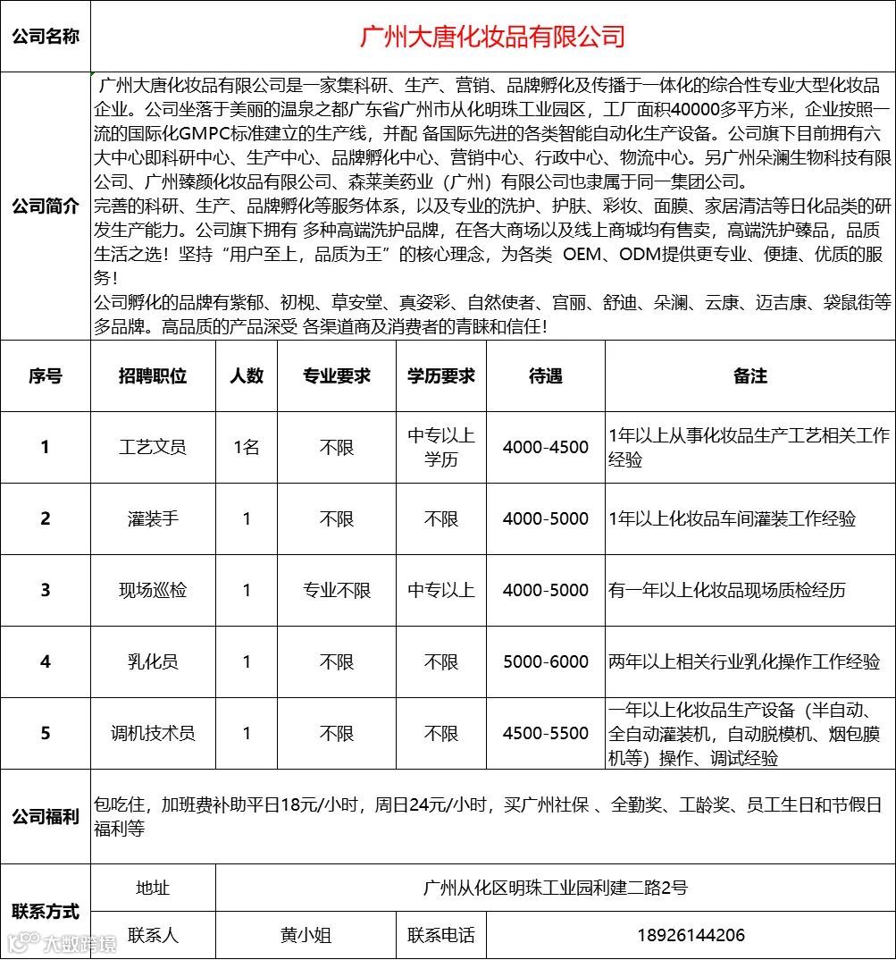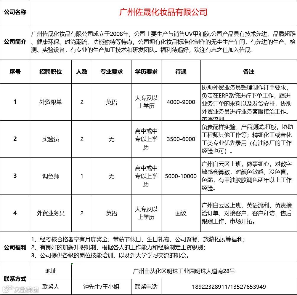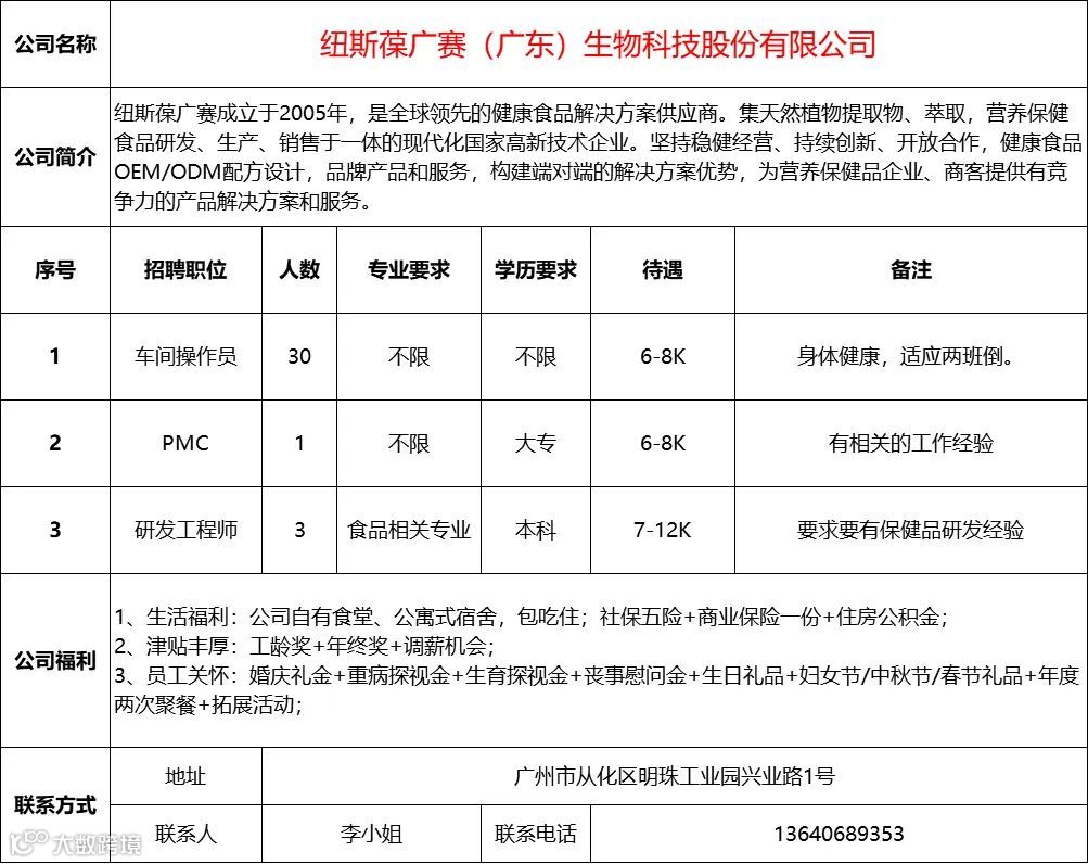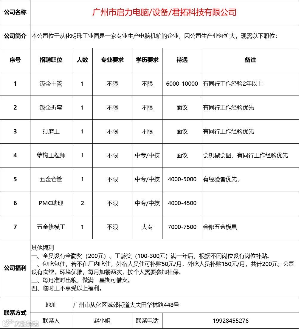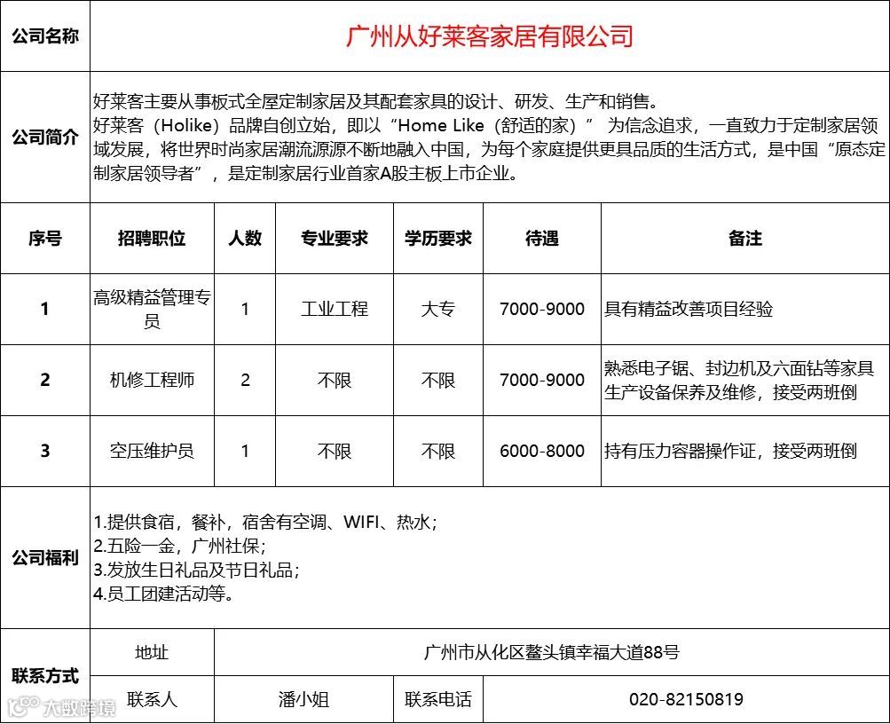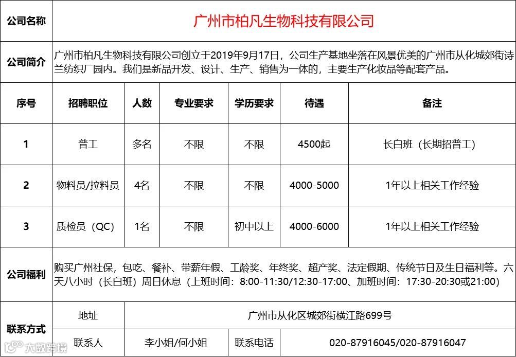 查看更多从化区招聘信息请点击下方