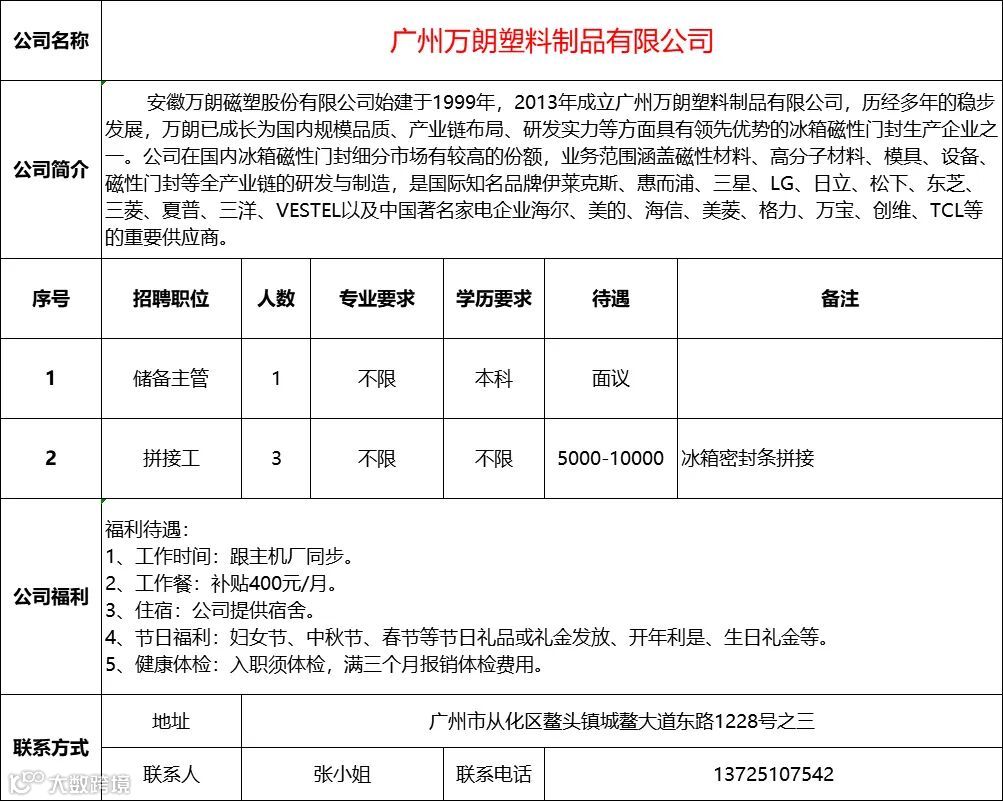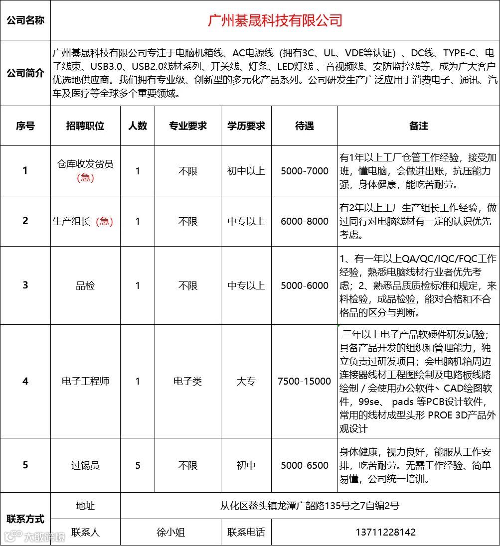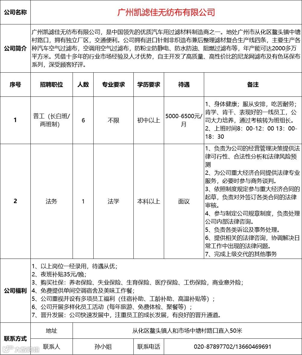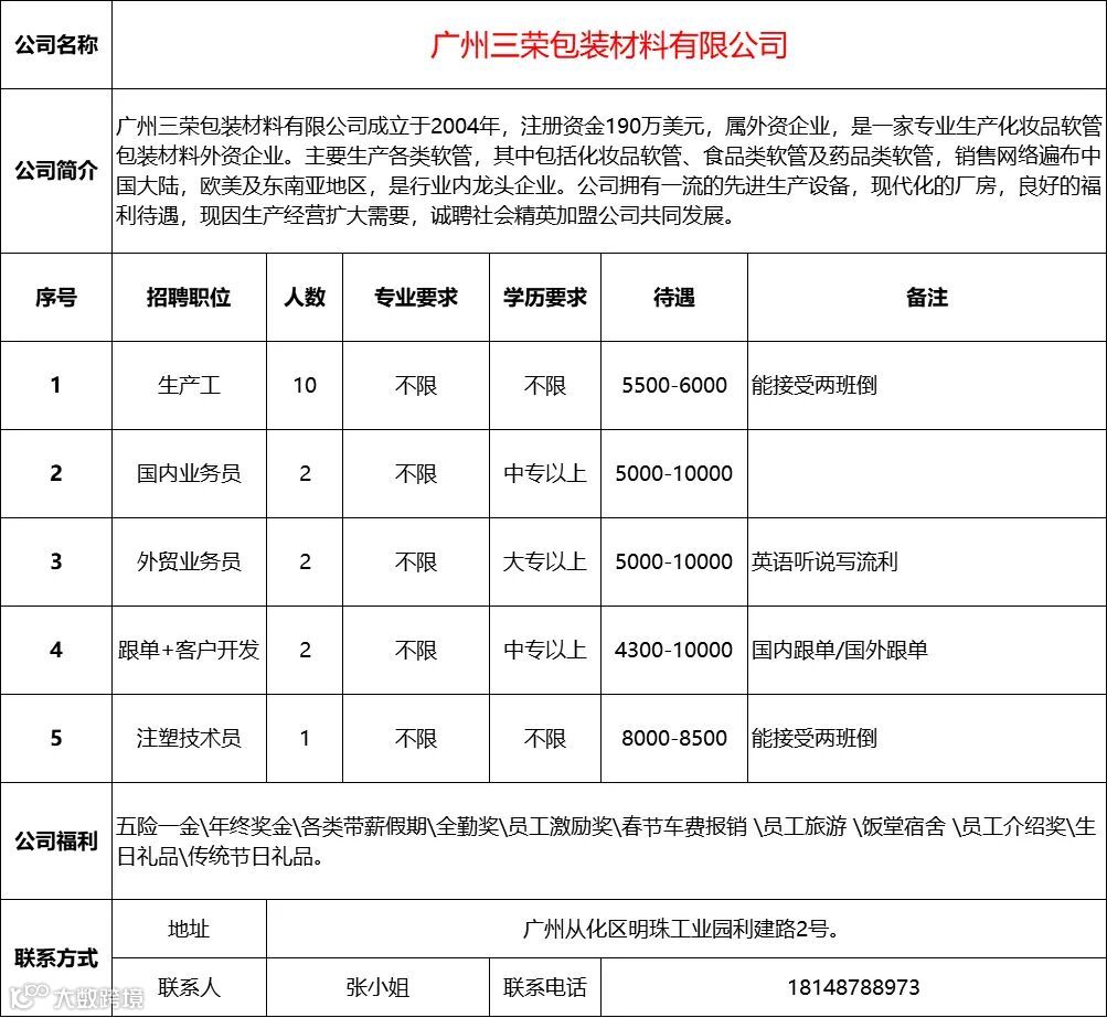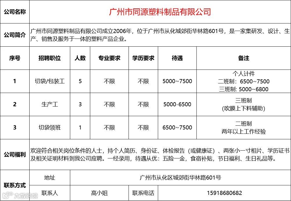 查看更多从化区招聘信息请点击下方