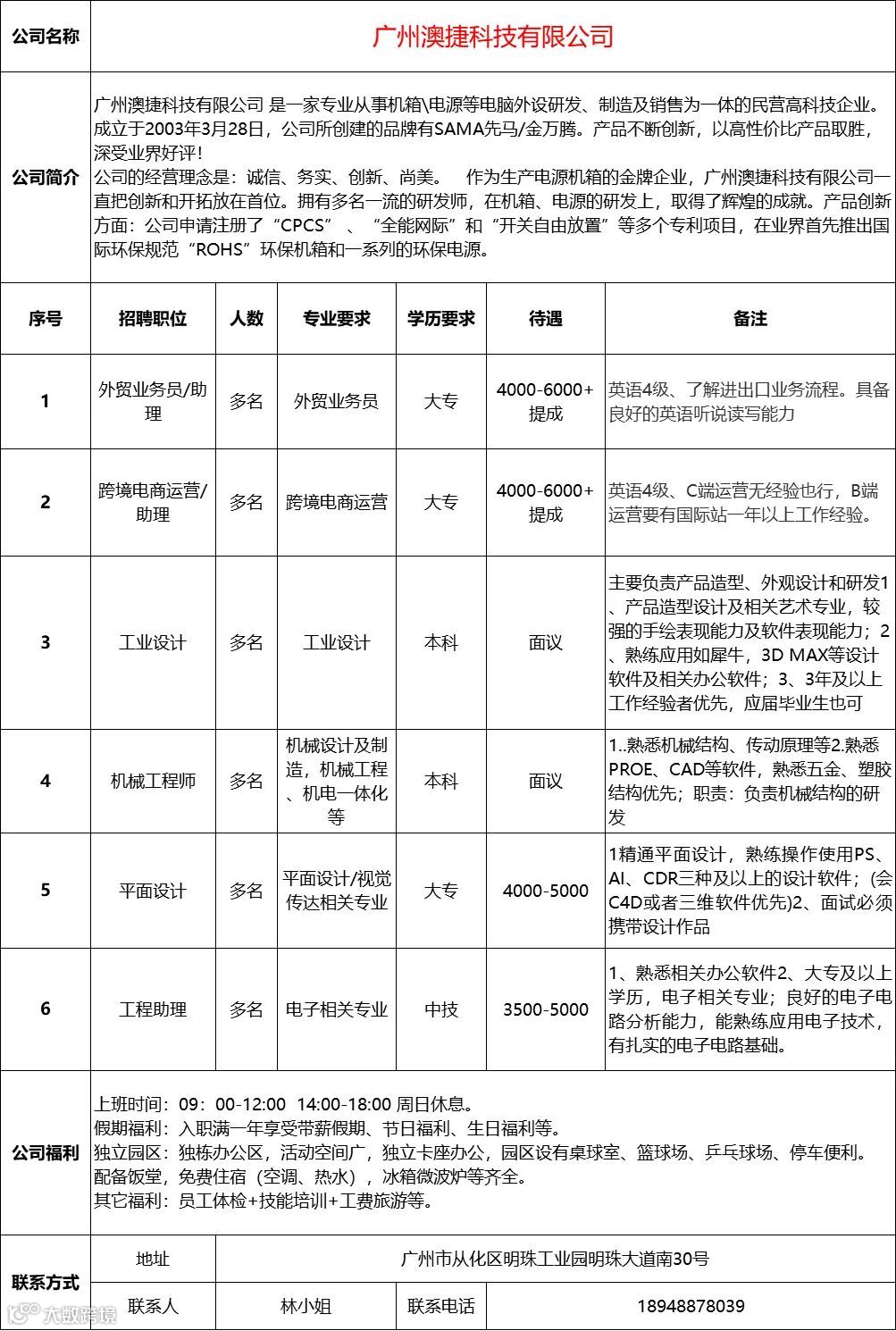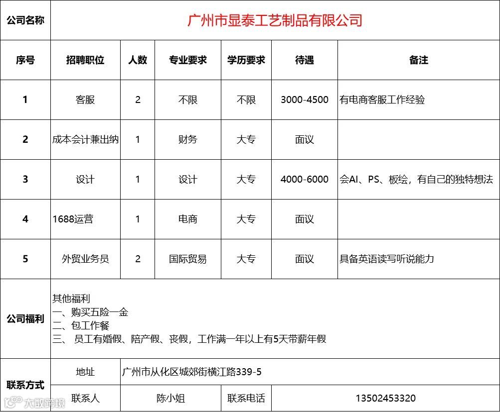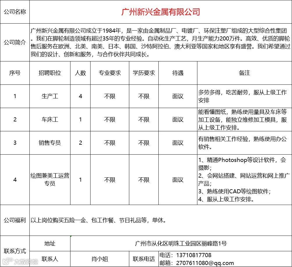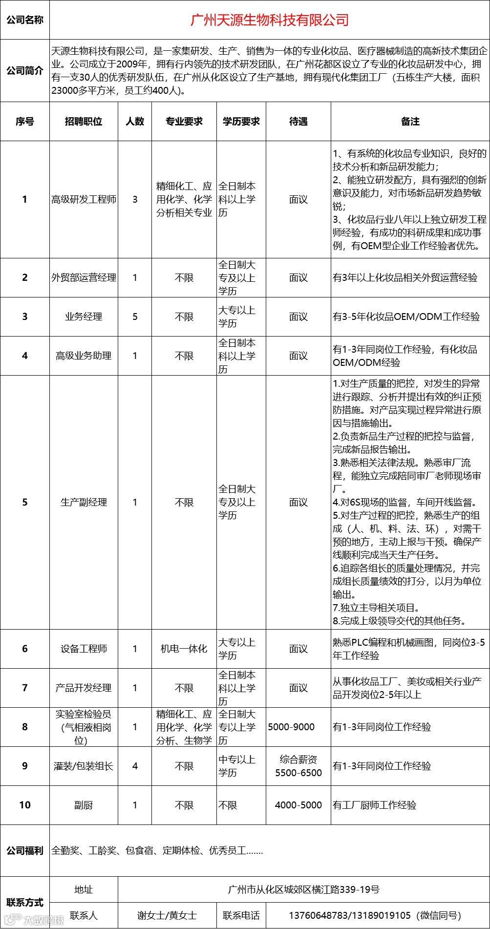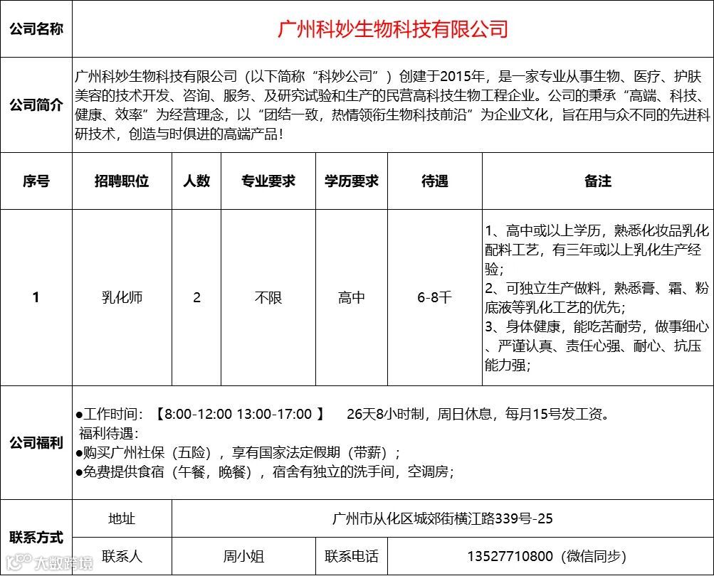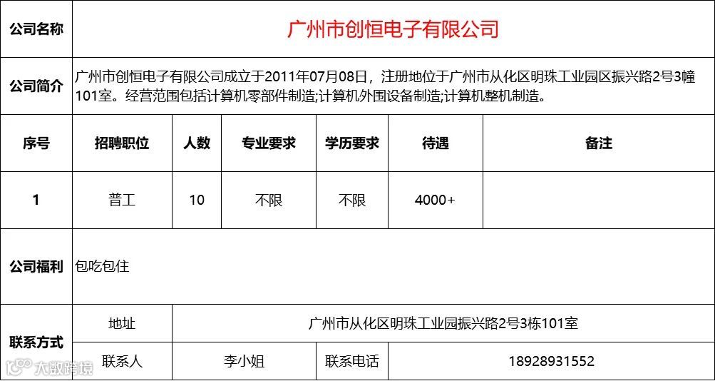 查看更多从化区招聘信息请点击下方
