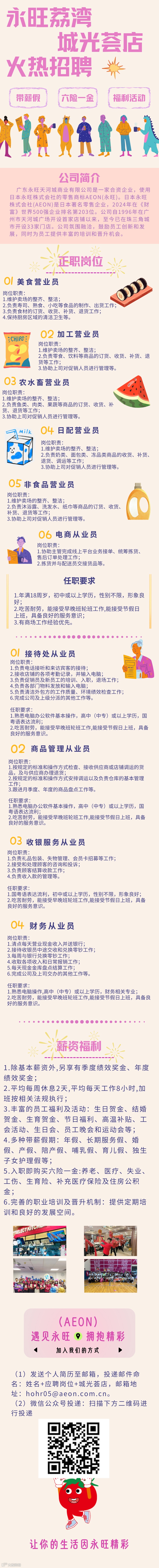 【广州招聘】六险一金+绩效+年终奖!营业员、招待处工作人员、电商、财务工作人员...永旺荔湾城光荟店等你来相会!