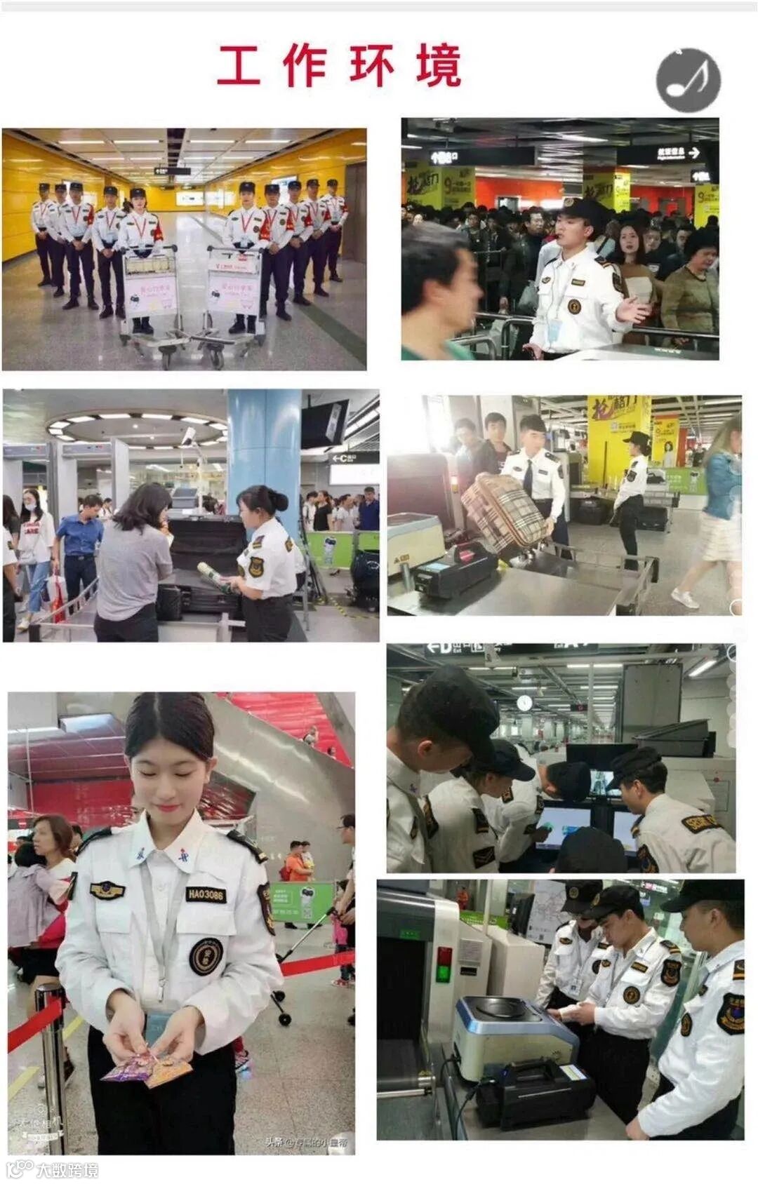 内容:行李检测,引导乘客,维持秩序,检票等