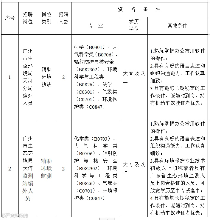 5.具有环境保护专业技术初级以上职称或者具有广东省生态环境监测人员上岗合格证的人员,报考辅助环境监测岗位可放宽学历至中专或高中;