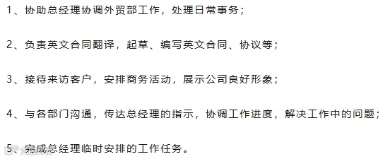1、国际贸易、商务英语类本科相关专业,英语专业八级以上,听说读写熟练,有接待外商经验;