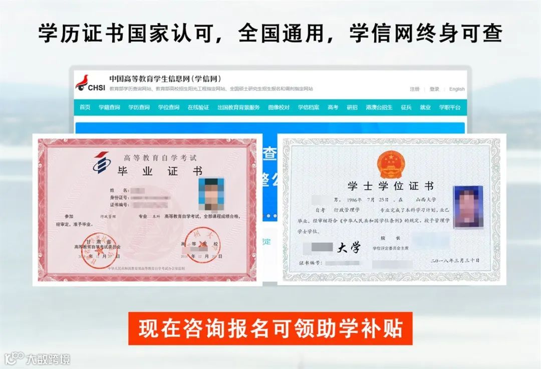 3、证书终身有效,学信网可查,国家承认,《条例》明确规定高等教育自学考试学历毕业证书获得者与普通高等学校同类毕业生待遇相同。