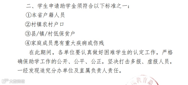 为支持全民教育提升,提高全民素质化教育进程,现在满足以下任意条件即可申请助学金: