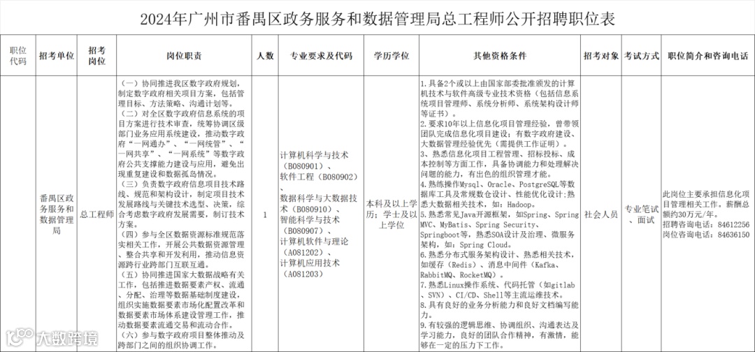 总工程师公开招聘职位表↓
