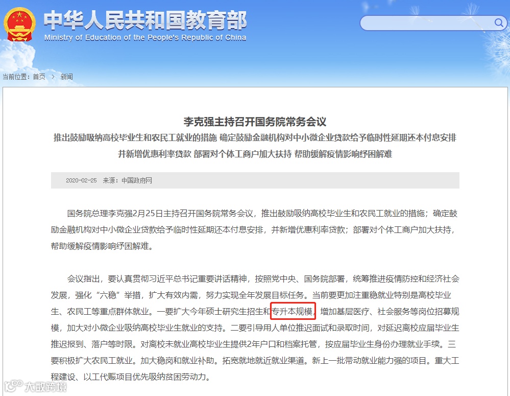 2021年新冠疫情危机下,为缓解就业压力,教育部大量扩招专升本录取人数,建立人才蓄水池,近期教育部发布通知——2022年“扩大专升本规模”重新开启: