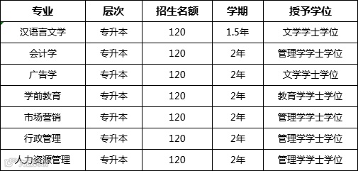 2、专升本(在校专科生或者已经取得专科及以上文凭的应届生和社会工作人员均可报名)