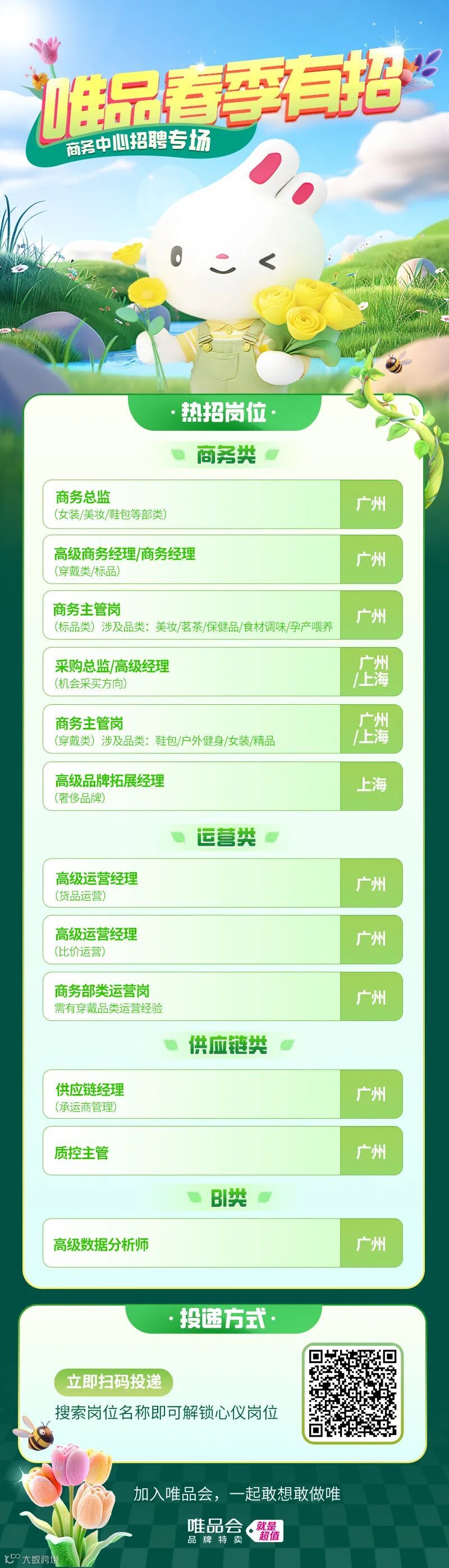 【广州招聘】唯品会社招,春季最新hc放出,广州超多岗位,就等你来投!