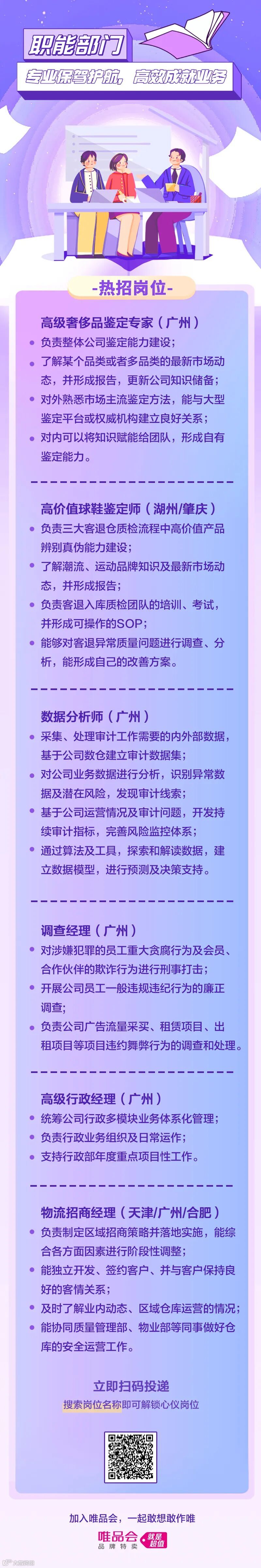 【广州招聘】去大企业上班!唯品会职能部门热招岗位来袭!广州超多岗等你来!快来试试~